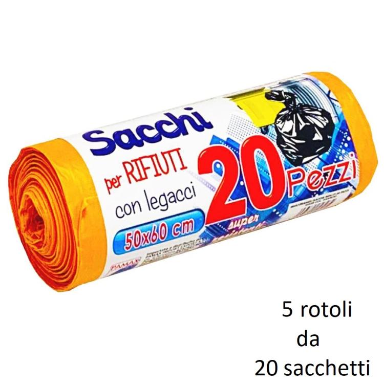 100 BUSTE SACCHI SACCHETTI RIFIUTI SPAZZATURA RACCOLTA DIFFERENZIATA 50X60cm ARA