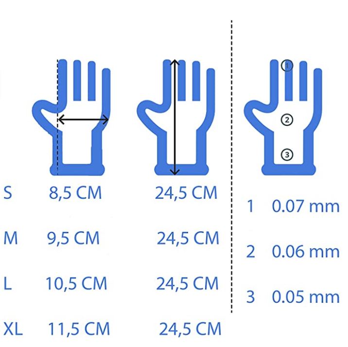 Prodotto conforme alla norma EN455 e EN374 per i test dei guanti monouso medici