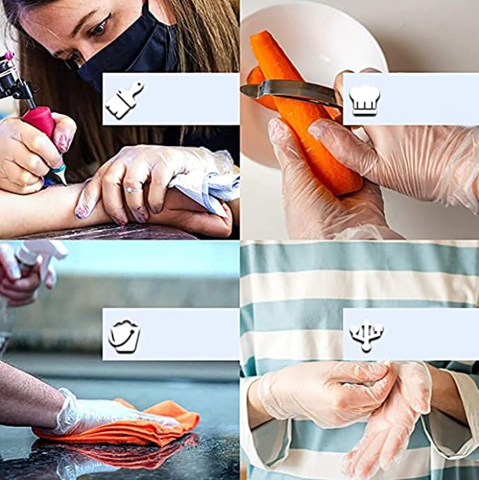100 GUANTI IN VINILE SENZA POLVERE/LATTICE IPOALLERGENICI TRASPARENTI MONOUSO |L