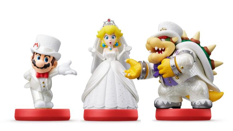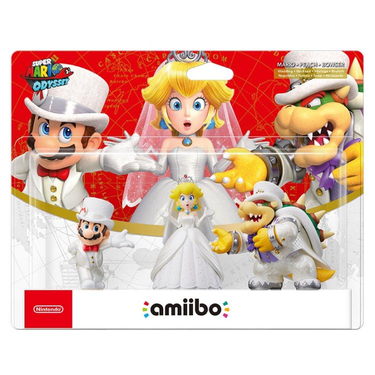 Set comprendente 3 amiibo Mario Wedding (in abito da sposo), Peach Wedding e Bowser Wedding.