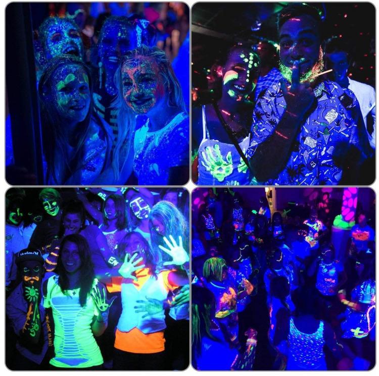 - Crea fantastiche atmosfere a concerti o feste, funziona alla grande con vernici UV per il corpo e fluorescenti.