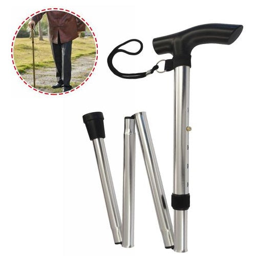 BASTONE PIEGHEVOLE PASSEGGIO PER ANZIANI DISABILI ALLUMINIO E ALTEZZA REGOLABILE