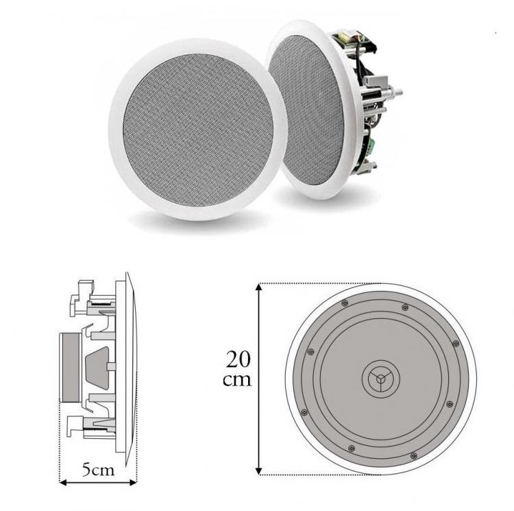 Altoparlante da incasso tondo, adatto a tutti i luoghi pubblici o in abitazioni dove è necessario avere un'estetica particolarmente raffinata.