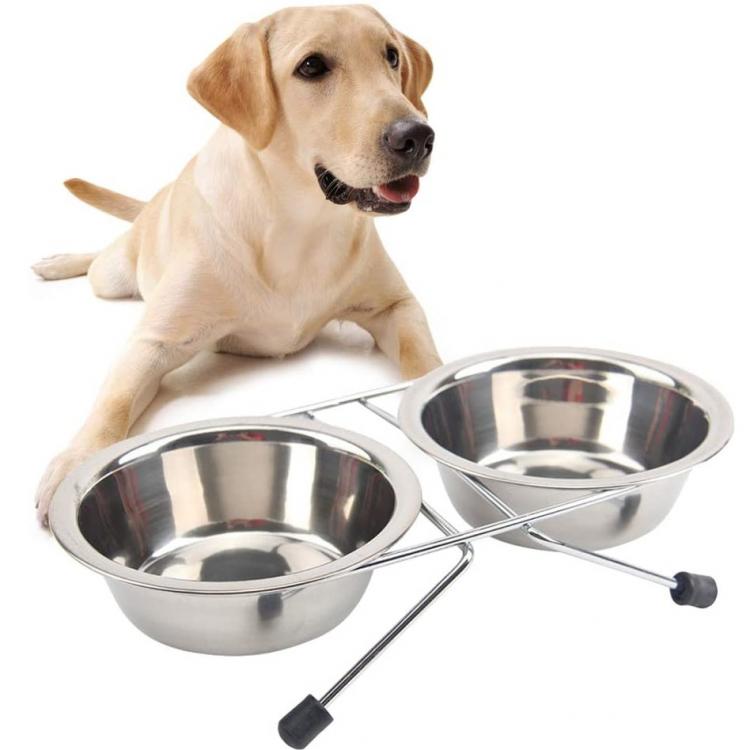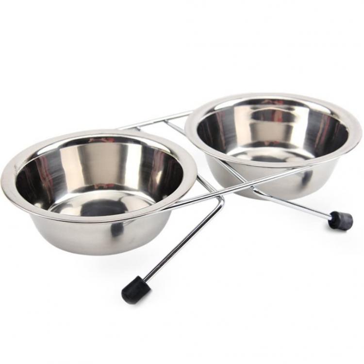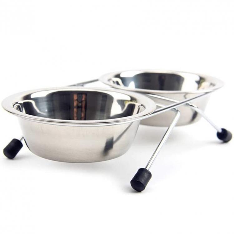 Ciotola Doppia Mangiatoia Per Animali Ciotole In Acciaio Scodelle Cani Gatti | L