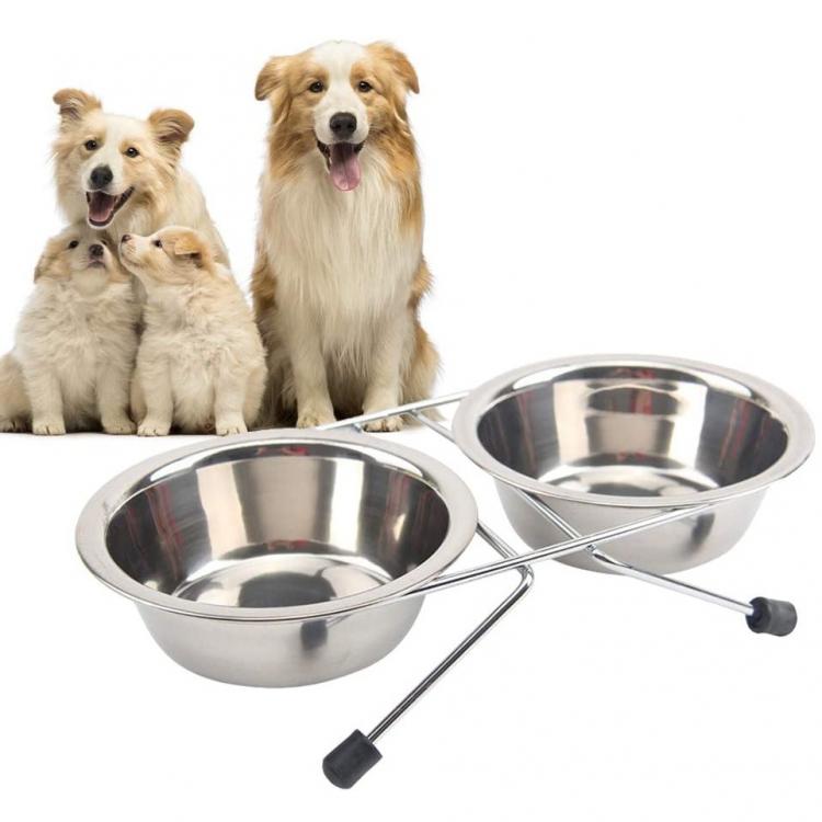 Ciotola Doppia Mangiatoia Per Animali Ciotole In Acciaio Scodelle Cani Gatti | S