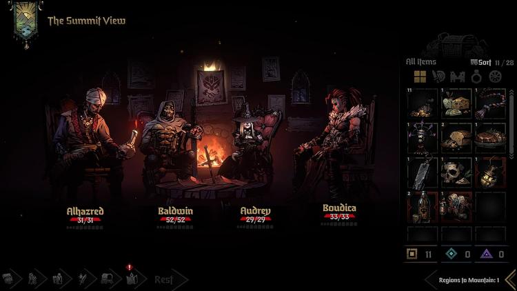 Man mano che la spedizione prosegue, gli eroi stringeranno legami o finiranno per odiarsi, dando origine a sinergie o a disfunzioni che porranno fine al viaggio. Gestisci lo stress e le interazioni per mantenere la squadra affiatata fino alla fine.