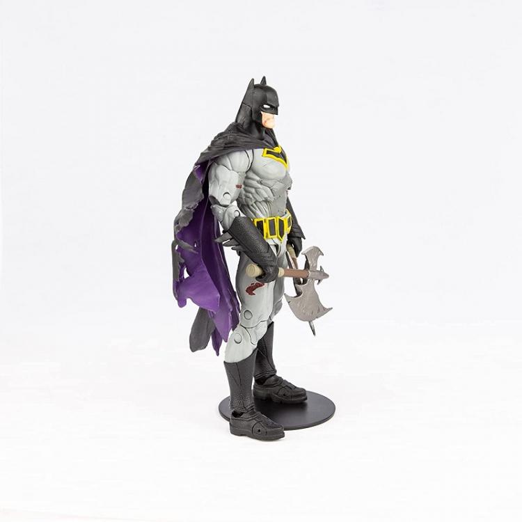 - La figura di Batman presenta un nuovo mantello e danni da battaglia e si basa sul suo aspetto in Dark Nights: Metal Comic