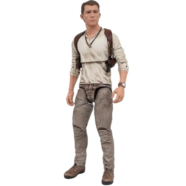 Una versione di Diamond Select Toys! Preparati per l'avventura di una vita! L'eroe dei videogiochi Nathan Drake è arrivato sul grande schermo con il film Uncharted, e ora il cacciatore di tesori è una action figure deluxe di DST! Dotato di 16 punti di articolazione, somiglianza cinematografica e una varietà di parti e accessori intercambiabili, questa figura è alta circa 7 pollici e viene confezionata in una scatola con finestra a colori. Progettato da Yuri Timg, scolpito da Gentle Giant Studios!