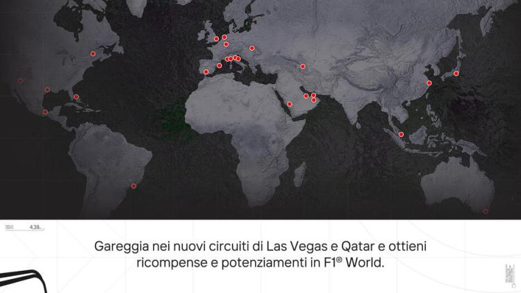 F1® World è il nuovo hub in cui troverai una serie di eventi e contenuti giornalieri, settimanali e stagionali, con un sistema di progressione basato sul Livello tecnico per un tour personalizzato della Formula 1®.