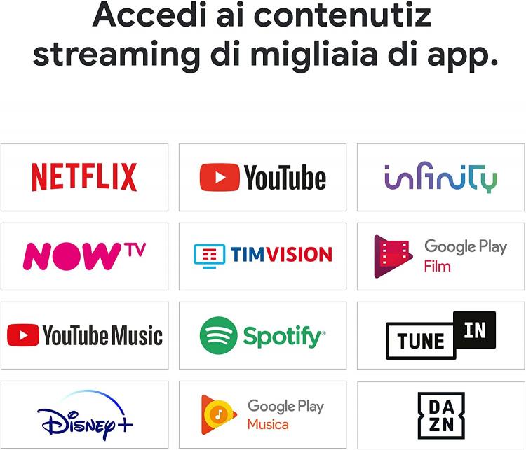 Divertiti con centinaia di app per Android o iPhone e riproduci o metti in pausa contenuti direttamente dal tuo telefono. Esegui il mirroring alla TV del monitor del tuo laptop tramite il browser Chrome. Naviga sul Web o controlla i tuoi contenuti multimediali sullo schermo di casa.