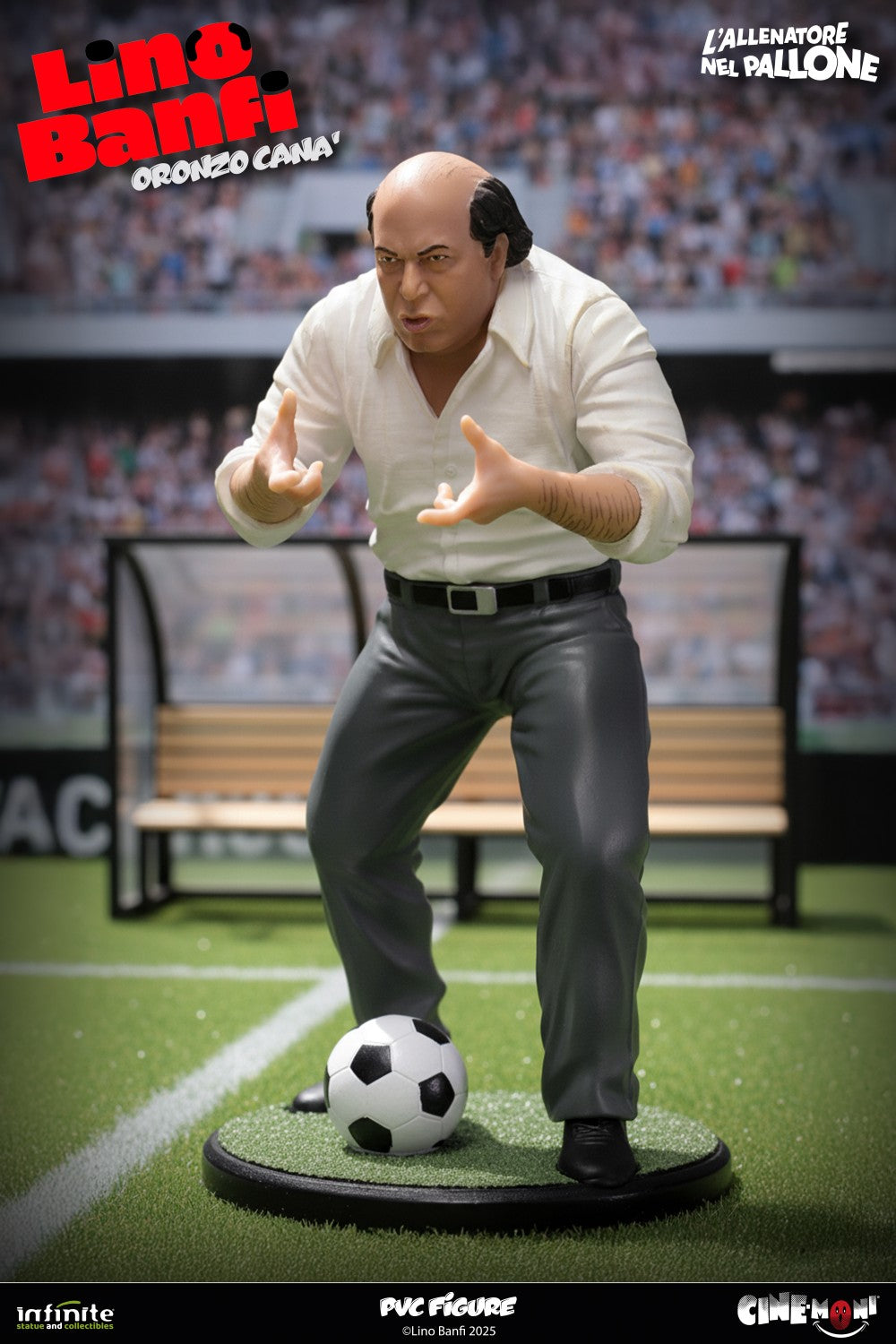 Con la nuova linea Cine-Moni, Infinite Statue & Collectibles porta in collezione i grandi protagonisti della commedia italiana. Questa statuina in PVC raffigura Lino Banfi nel ruolo indimenticabile di Oronzo Canà, dal film cult “L’Allenatore nel Pallone”. Dettagli curati, posa iconica ed espressione inconfondibile rendono questo Cine-Moni un pezzo imperdibile per i fan. Base display a tema inclusa e removibile.