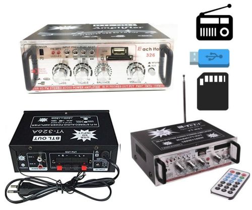 Ottimo amplificatore HI FI con diverse funzioni integrate come la possibilità di ascoltare la Radio FM, riprodurre file Mp3. Alta qualità in ingresso e in uscita con accensione separata tra radio fm e stereo. Dotato di uscita stereo e ingresso RCA audio per DVD, legge mp3 direttamente da chiavetta usb o scheda SD. Sulla parte frontale sono presenti il controllo volume, controllo degli alti e dei bassi ed il bilanciamento del suono. E' presente anche un misuratore VU Meter a lancetta. La potenza d'uscita è di 200W + 200W picco/picco. Inoltre grazie alla porta usb e alla possibilità di inserire schede SD, possiamo leggere ascoltare la nostra musica preferita. Sulla parte frontale sono presenti i controlli per la riproduzione dei brani e le manopole per il controlli dei volumi. Sul retro invece troviamo i connettori per le casse, l'antenna per la radio. Tutto può essere gestito mediante il telecomando in dotazione