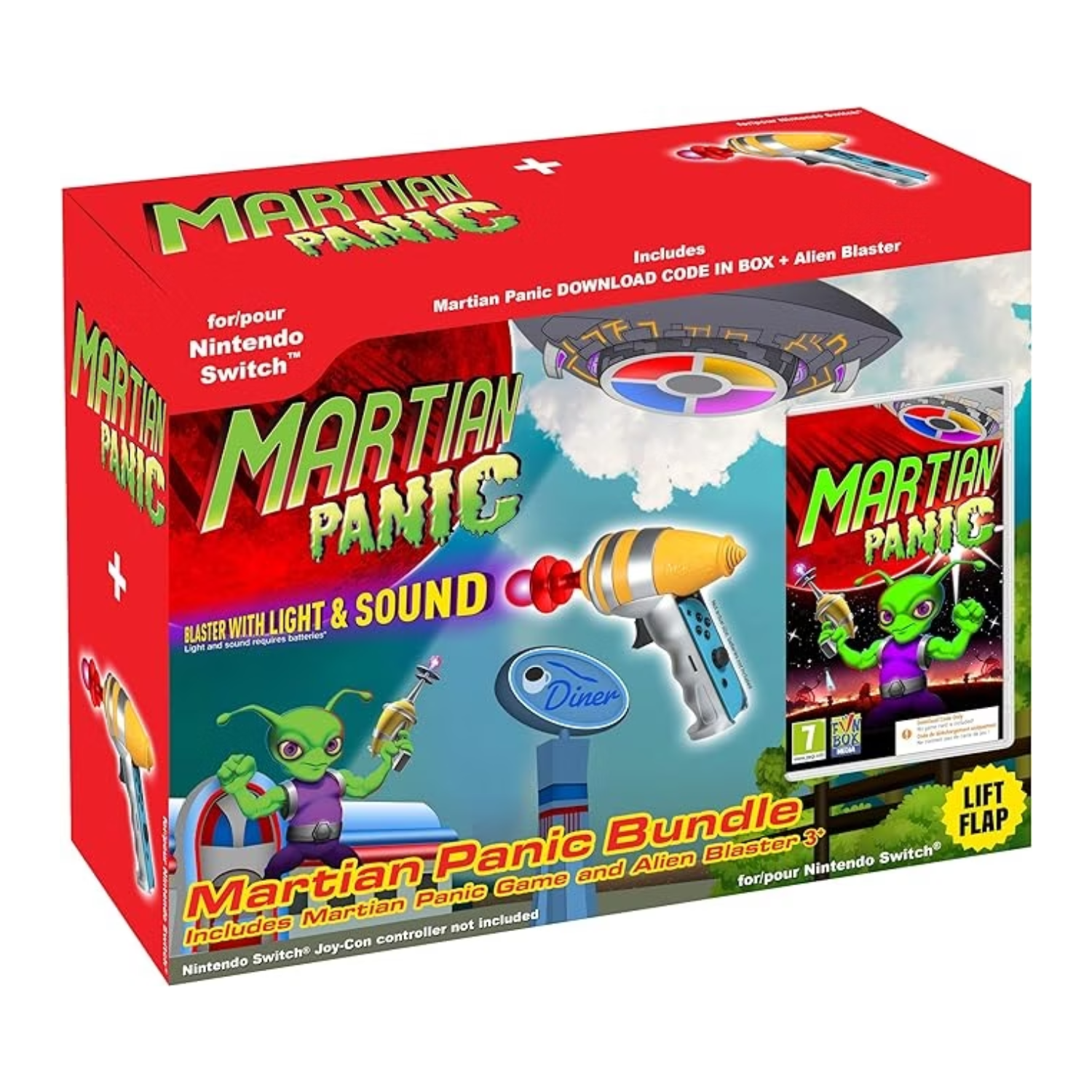 Questo set esclusivo include il videogioco Martian Panic in versione EU multilingua (con italiano incluso) e l’accessorio Alien Blaster, per vivere un’esperienza di gioco ancora più coinvolgente e realistica.