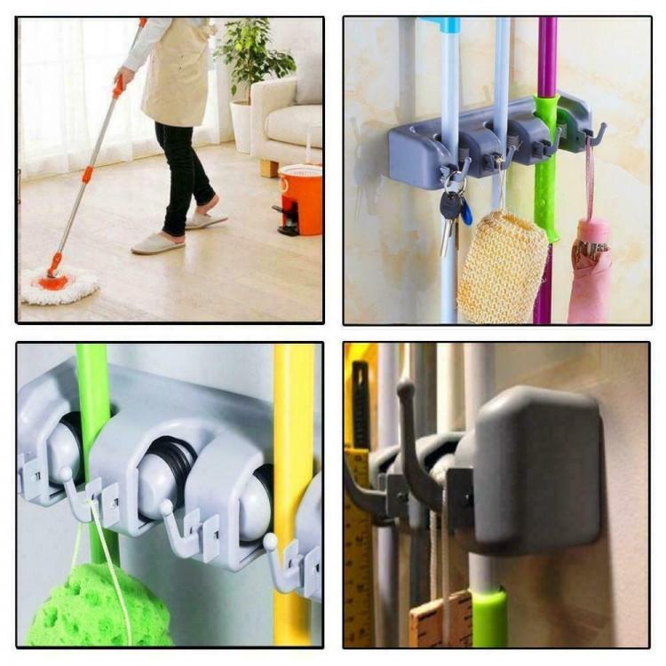 Organizer Porta Appendi 4 Scopa Mazze Da Muro A Parete E Ganci Portatutto Scope