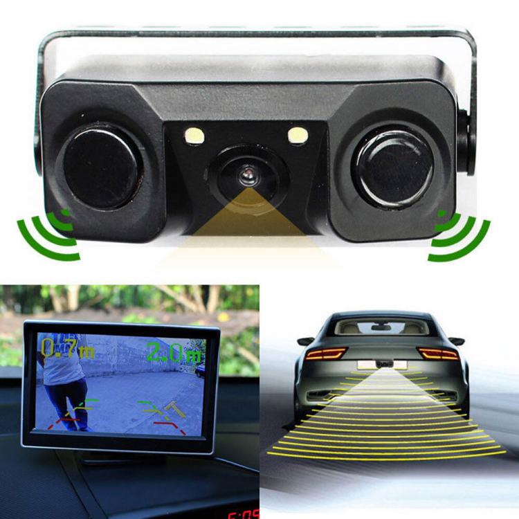 TELECAMERA RETROMARCIA CON SENSORE DI PARCHEGGIO 2 LED ANGOLO 170 GRADI NOTTURNA