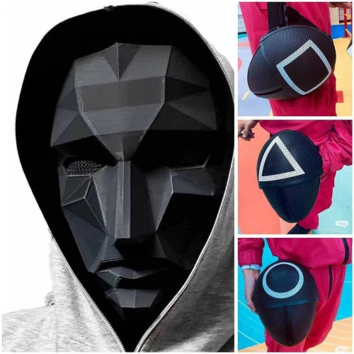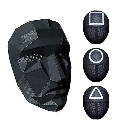 Set 4 Pz Maschere Squid Game Quadrato Cerchio Triangolo Frontman Serie Netflix