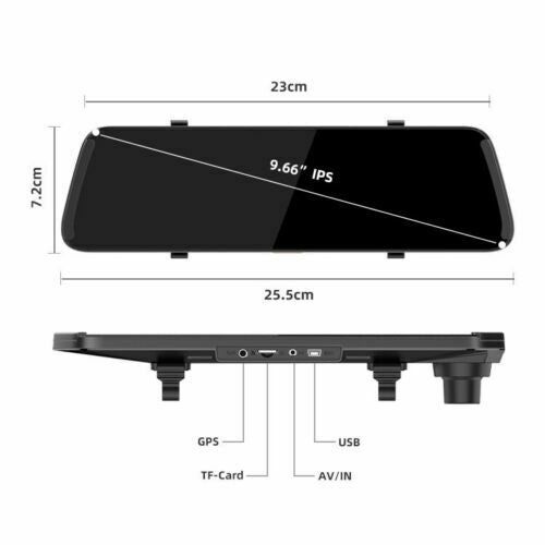 - Lo specchietto multimediale in streaming da 9,66″ con il suo campo di visione frontale di170 ° è sufficientemente ampio per catturare l’immagine grande, offre anche una risoluzione massima 1080P super nitida, che consente di visualizzare dettagli come la licenza targhe, segnali stradali più facilmente di dash cam con risoluzione inferiore ..