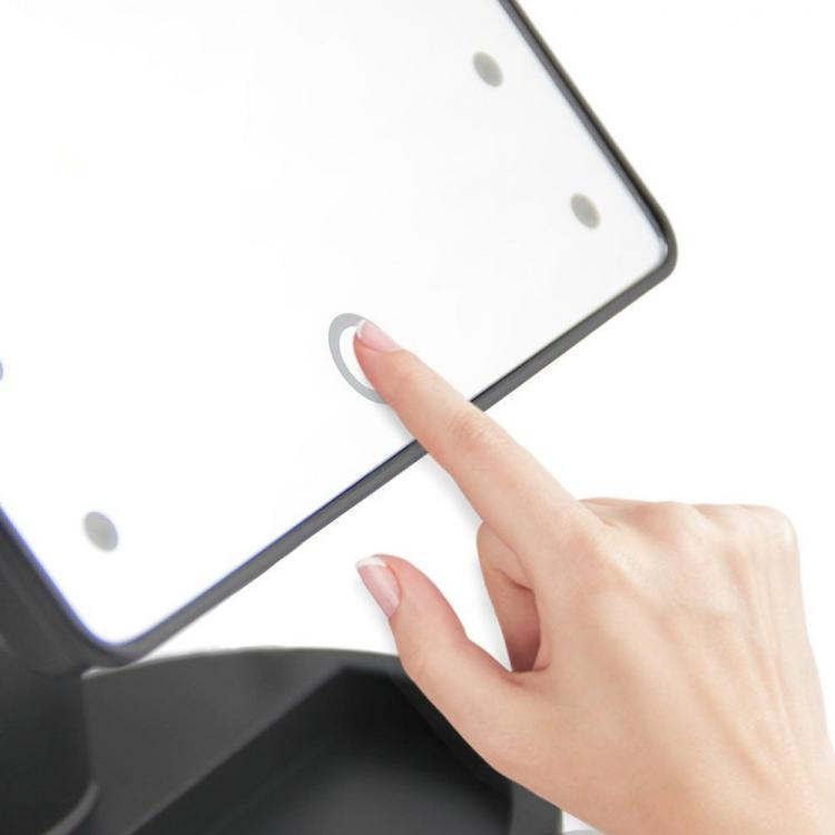 I 16 LED bianchi posizionati lungo lo specchio una volta accessi illuminano il viso in maniera frontale permettendoti di essere più precisa nel trucco e nella depilazione proprio come in un vero centro di bellezza.