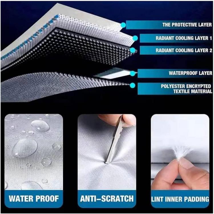 La nostra copertura per auto è realizzata in materiale oxford, che è traspirante e resistente. L'interno della copertura dell'auto è lavorato con artigianato argentato e i cascami di cotone sono costruiti con pelucchi ad alta densità per proteggere meglio il corpo dell'auto e prevenire la caduta della vernice.