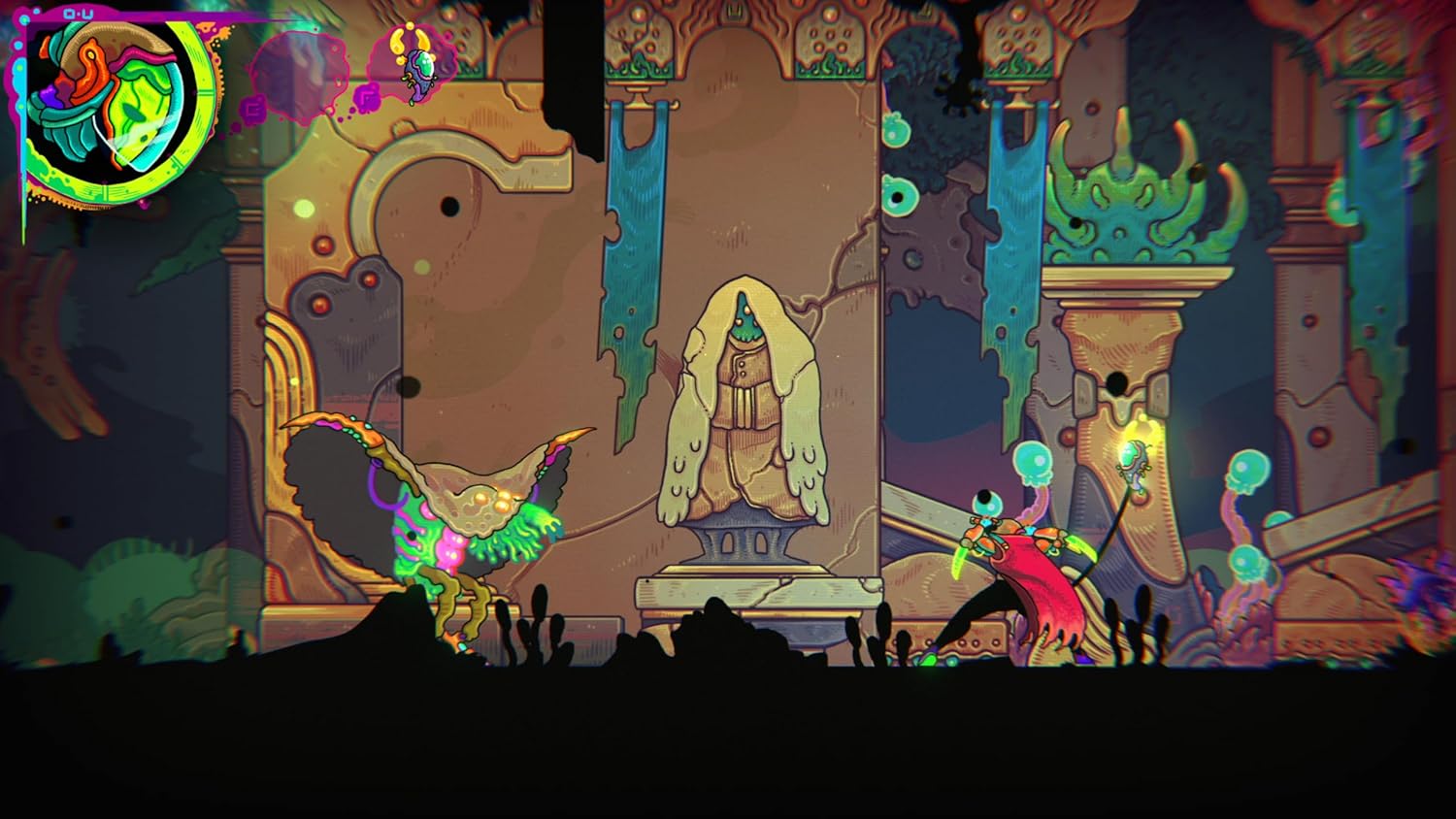 - GAMEPLAY PSICHEDELICO: Un metroidvania unico con combattimenti intensi e momenti contemplativi, ambientato in un utero cosmico chiamato Sarcofago