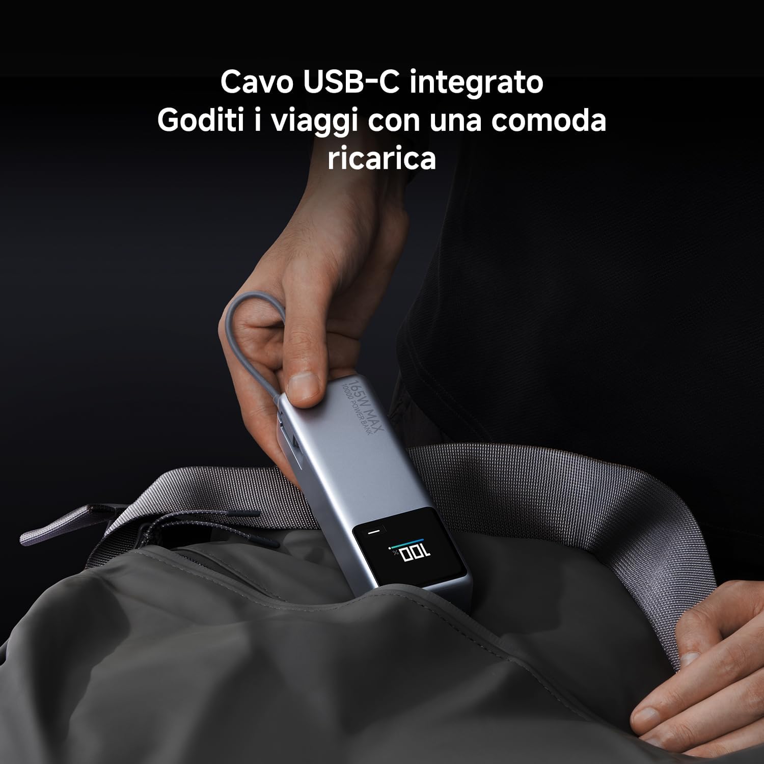- Cavo USB-C integrato: offre fino a 120 W di potenza in uscita per una ricarica rapida e semplice senza cavi aggiuntivi.