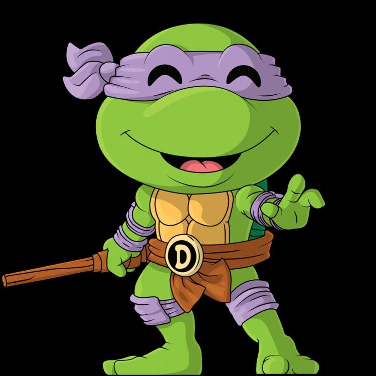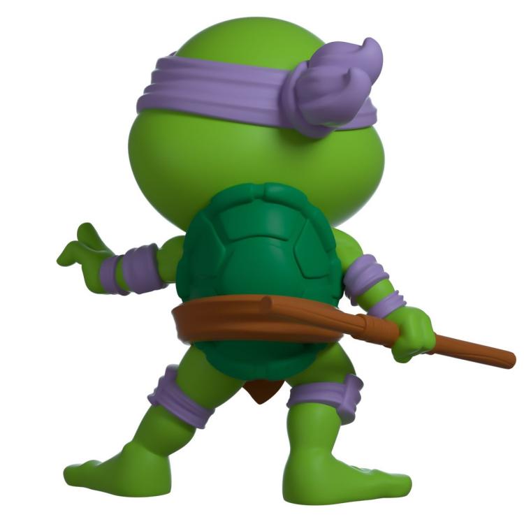 Le Tartarughe Ninja fanno il loro radicale debutto su Youtooz! Il cervello del gruppo, Donatello è alto 4,2 pollici ed è in posa con una mano tesa mentre l'altra brandisce un lungo bastone di legno dietro la schiena pronto a girarsi per un feroce attacco. Indossa un grande sorriso a bocca aperta sul viso, mentre una maschera viola pallido è legata strettamente intorno ai suoi occhi ed è abbinata alle fasce per braccia e gambe. La sua cintura marrone fluente gli avvolge la vita ed è tenuta in posizione da un medaglione dorato. L'esterno della sua confezione lo mostra nelle profondità più basse della fogna fino alla caviglia, immerso nell'acqua, mentre si allena con due dischi laser elettrificati. Mentre l'interno è uno sfondo viola chiaro che mostra un collage vettoriale delle tartarughe e dei loro nemici. Questo motivo continua poi sulla custodia protettiva in un vivido verde lime. Questo oggetto da collezione viene spedito in una custodia esterna protettiva opaca, in rilievo e una protezione in plastica di dimensioni personalizzate per la massima protezione durante la spedizione.